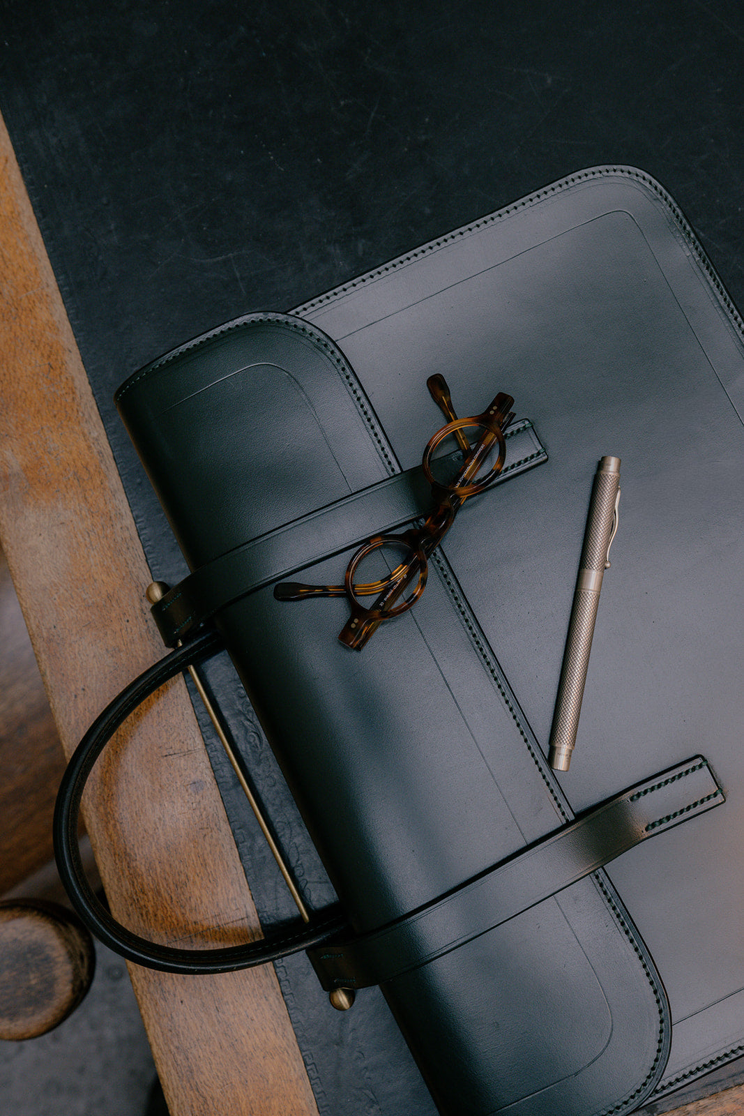 We use only the finest English bridle leather, solid brass fittings, and time-honoured techniques. Designed to age beautifully and carry for life.
